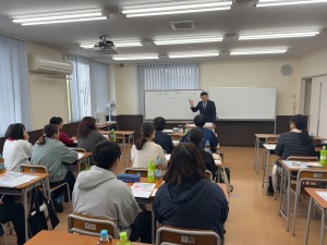中3生には入試に向けての学習法や心構え、日々の時間の使い方など説明いたしました。