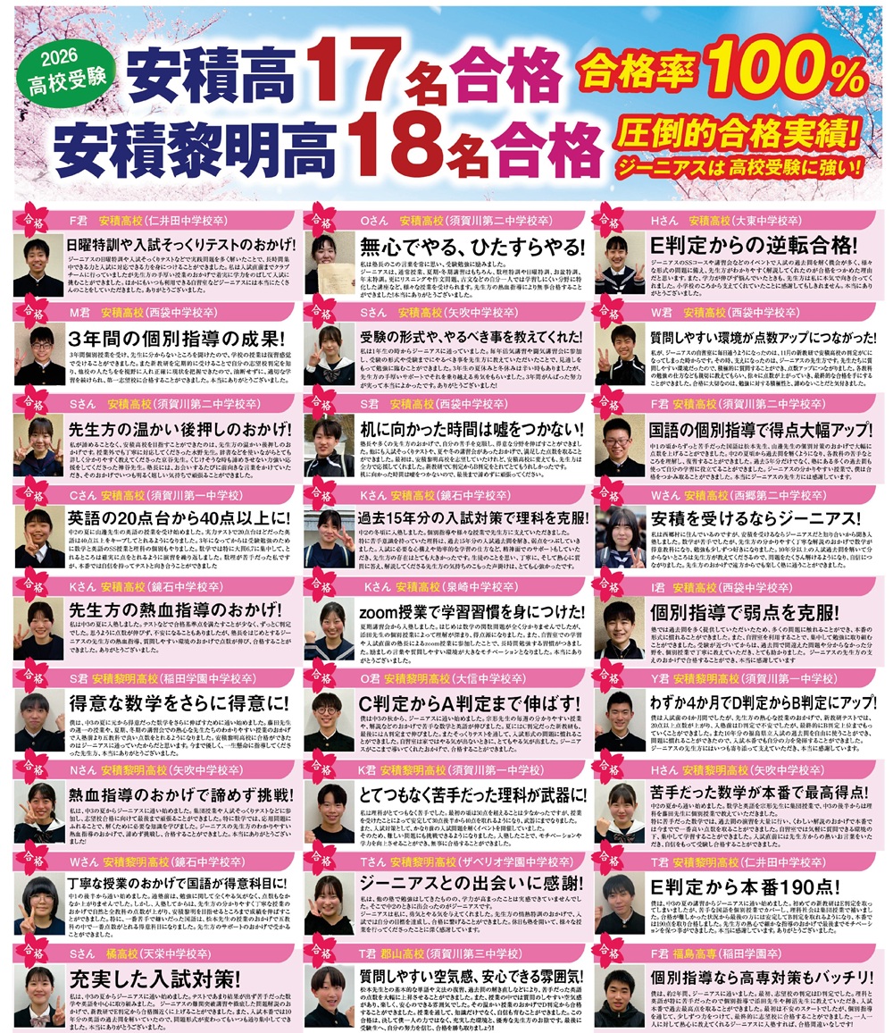 福島県須賀川市の学習進学塾 情熱特訓 ジーニアス