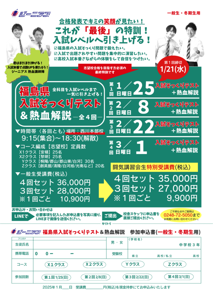 【1・2・3月】福島県入試そっくりテスト&熱血解説